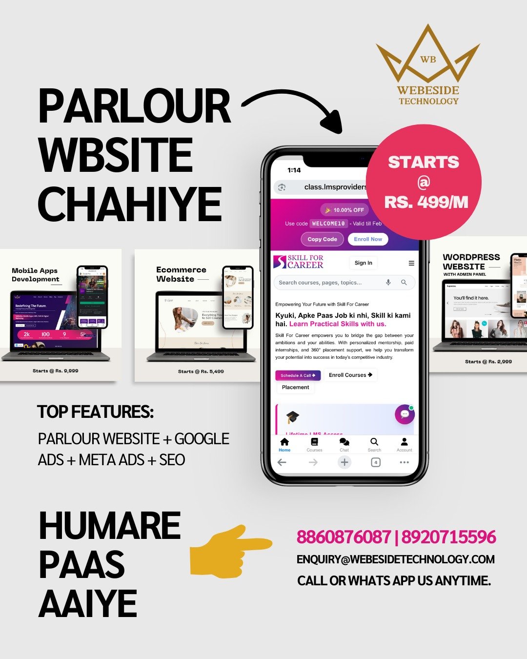 We offer a complete digital growth solution including Website Design & Development, SEO, Ads (Google & Social Media), and a Parlour Management System to help you attract more clients and simplify operations.